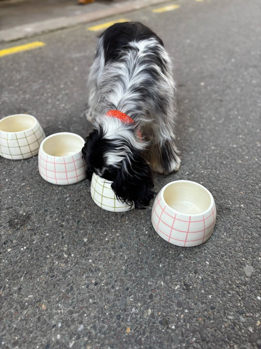 Pour un cocker ou un chien à longues oreilles, nous vous conseillons d'opter pour une gamelle avec une forme pyramidale et légèrement surélevée. Cela permet d'éviter aux oreilles de tremper dans l'eau ou la nourriture de votre chien. Chez Nugget nous vous proposons différents modèles de gamelles cocker en céramique, faites à la main et produites localement.