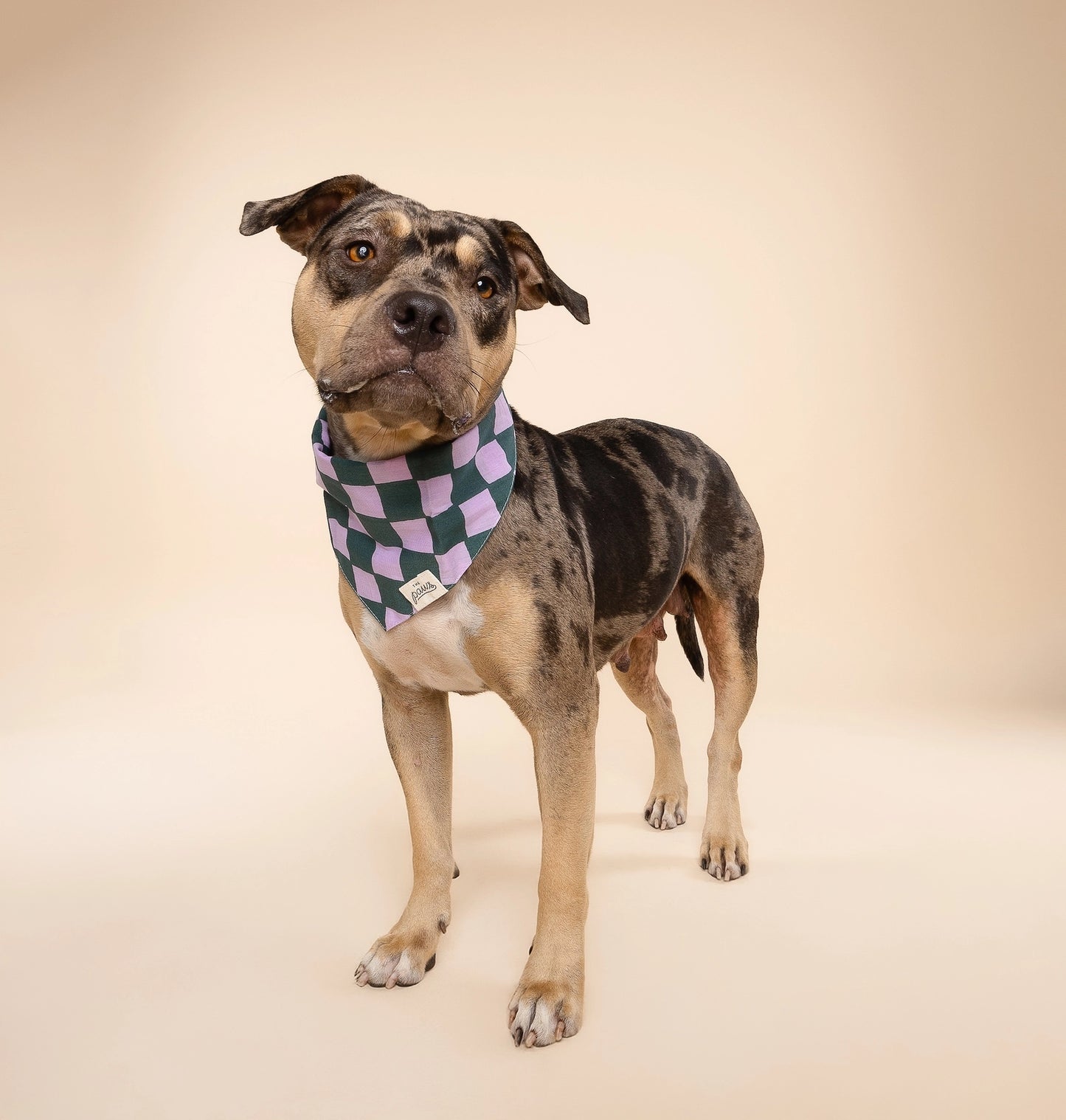 Green and purple checkered bandana