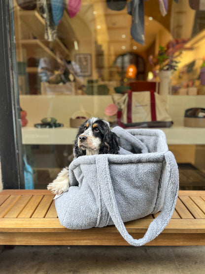 Your new essential for all your travels. The grey Teddy tote bag allows you to easily take your companion everywhere with you. For a train trip, a car trip, a trip to a restaurant or a café terrace, this bag will allow you to offer maximum comfort to your little one because it will also serve as a basket to recharge his batteries. The bag comes with a teddy cushion which creates a very comfortable base.