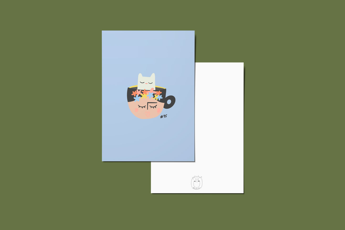A6 size illustrated postcard, sold with its natural white envelope. Digital printing on smooth matte white paper (300gr/m ²). Packaged in blister.