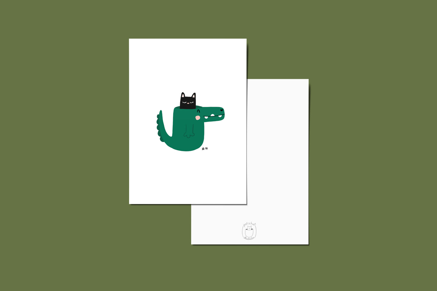 A6 size illustrated postcard, sold with its natural white envelope. Digital printing on smooth matte white paper (300gr/m ²). Packaged in blister.