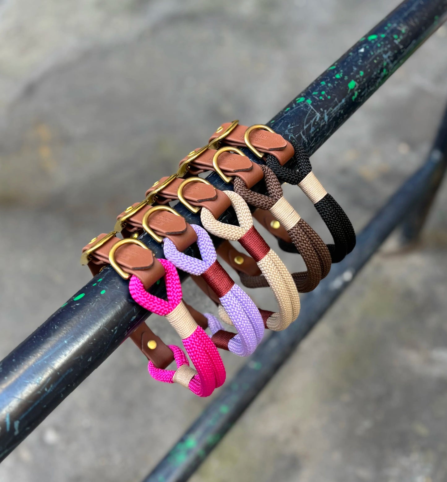 Biothane dog collar ® and rope with solid brass hardware. Handmade in Paris by Atelier Markiz, these colors are exclusive to Nugget.