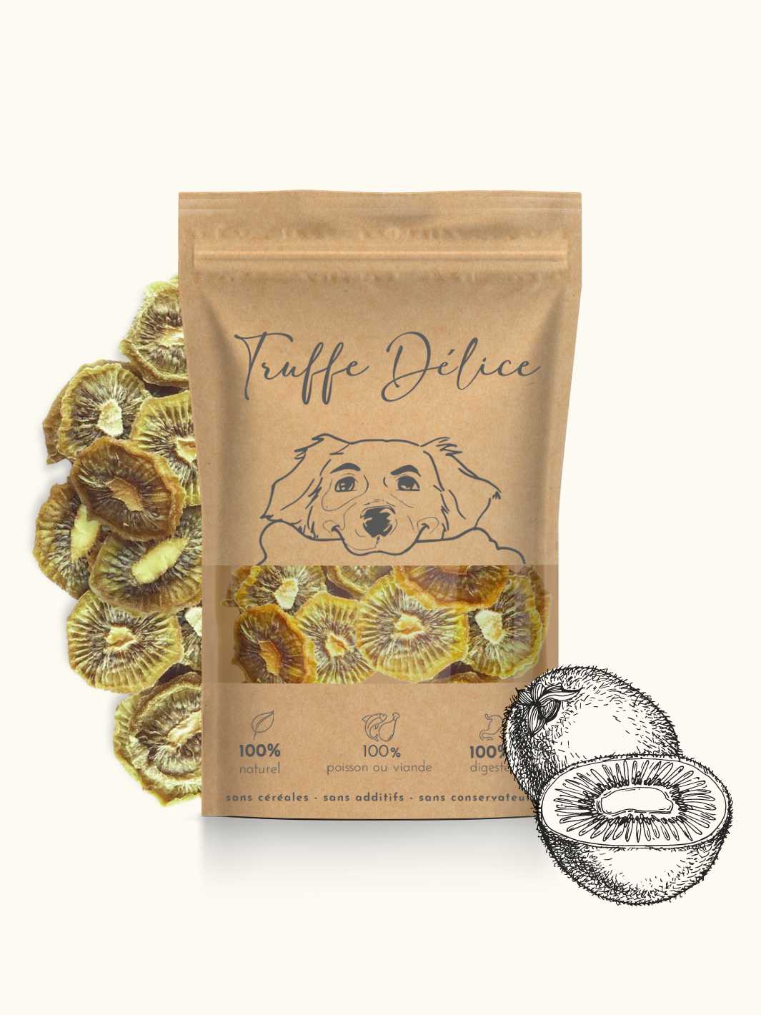 Dried kiwis for dogs are natural, tasty and nutritious treats, perfect for rewarding your little one or supplementing his bowl to make it more appealing.