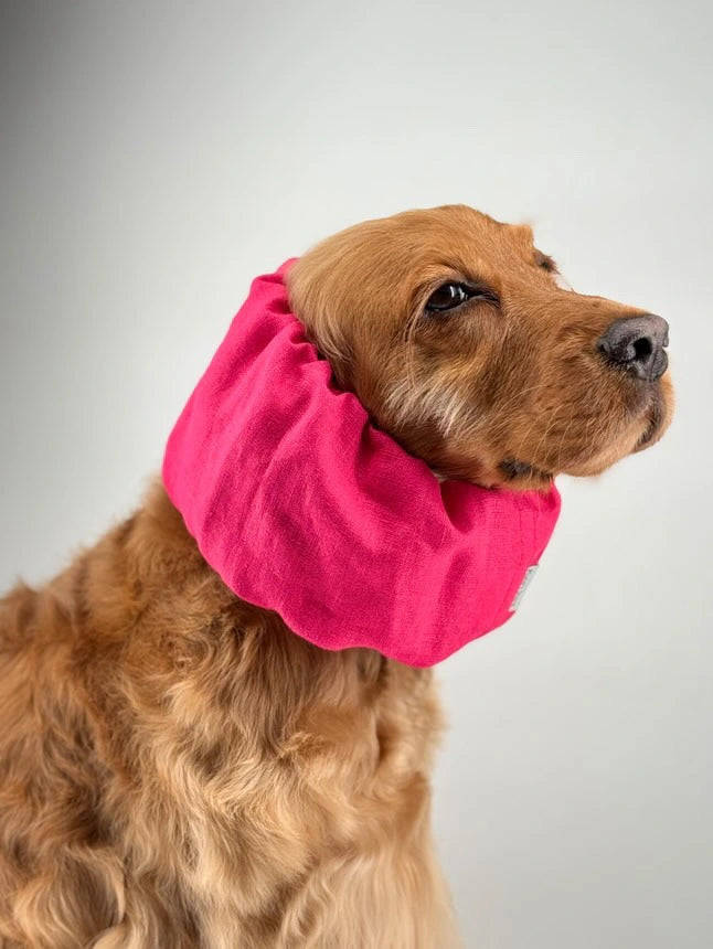 Snood pour chien d'été léger en lin coloris rose fuschia, fabriqué à la main.