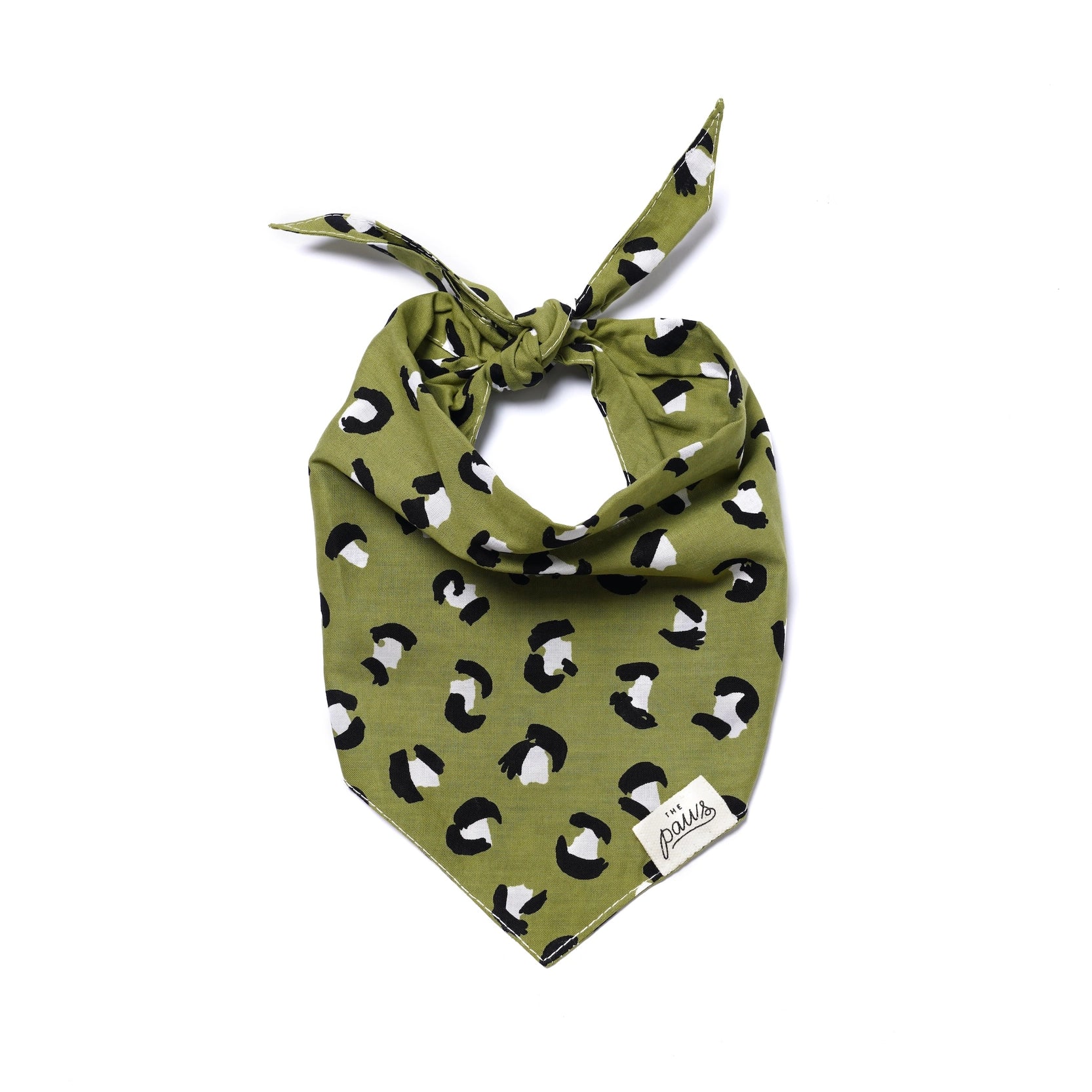 Bandana en coton à nouer autour du cou, motif léopard kaki.