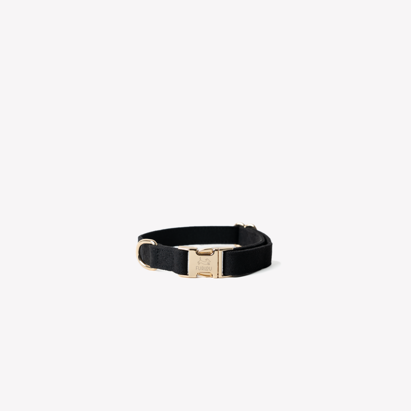 Collier fabriqué en toile de coton douce et doté d'une bouclerie dorée. Léger, respirant et doux pour le cou de votre chien, son système de sangle permet de l'ajuster parfaitement à la taille de cou de chaque chien.