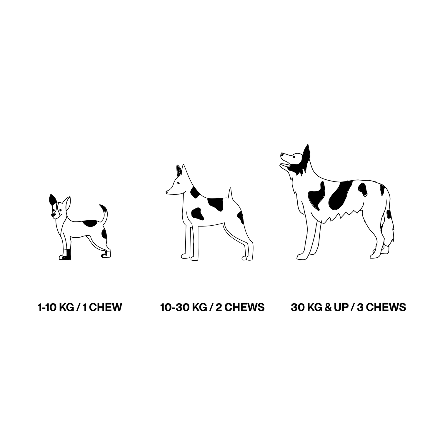 Pour les chiens entre 1-10 kg : 1 bouchée par jour