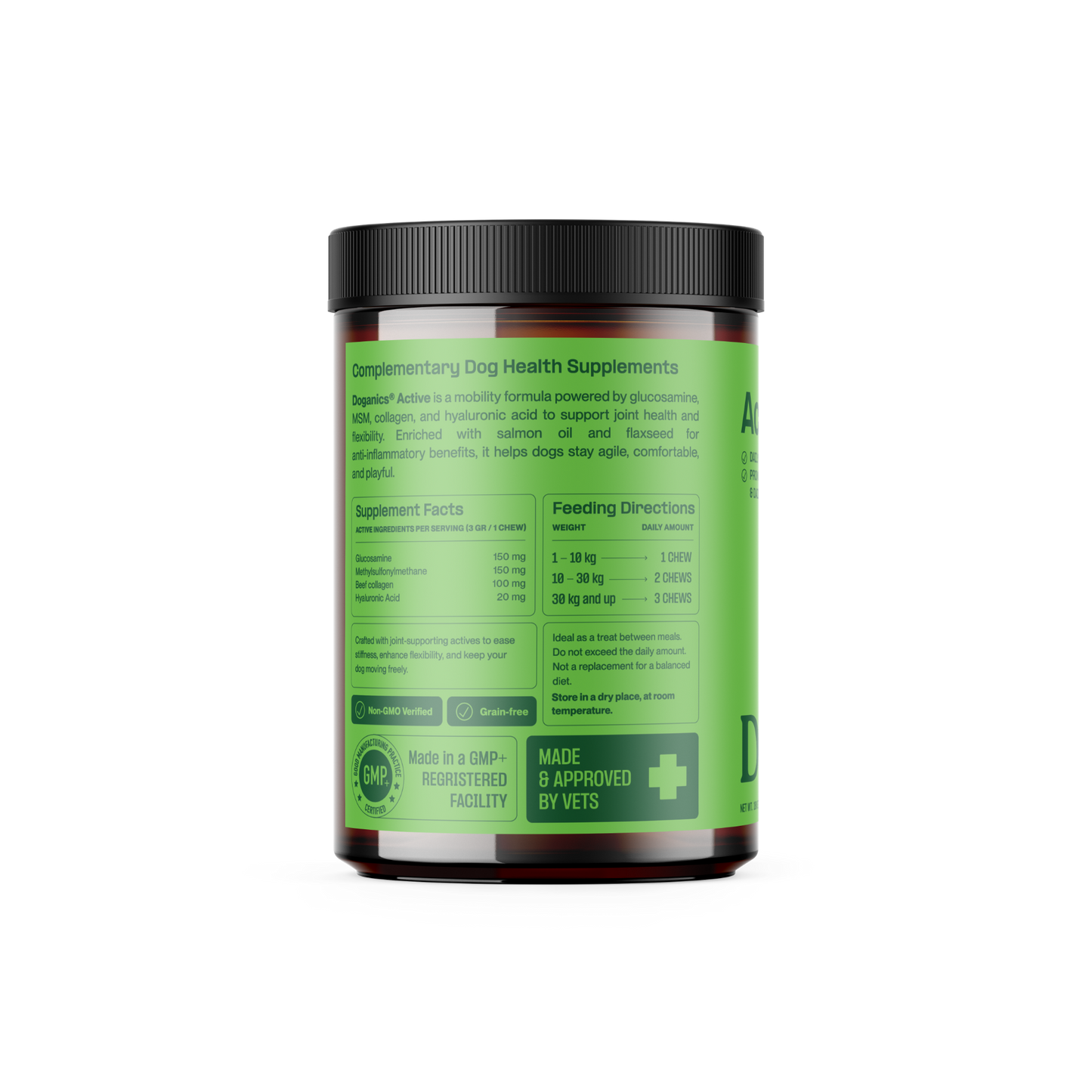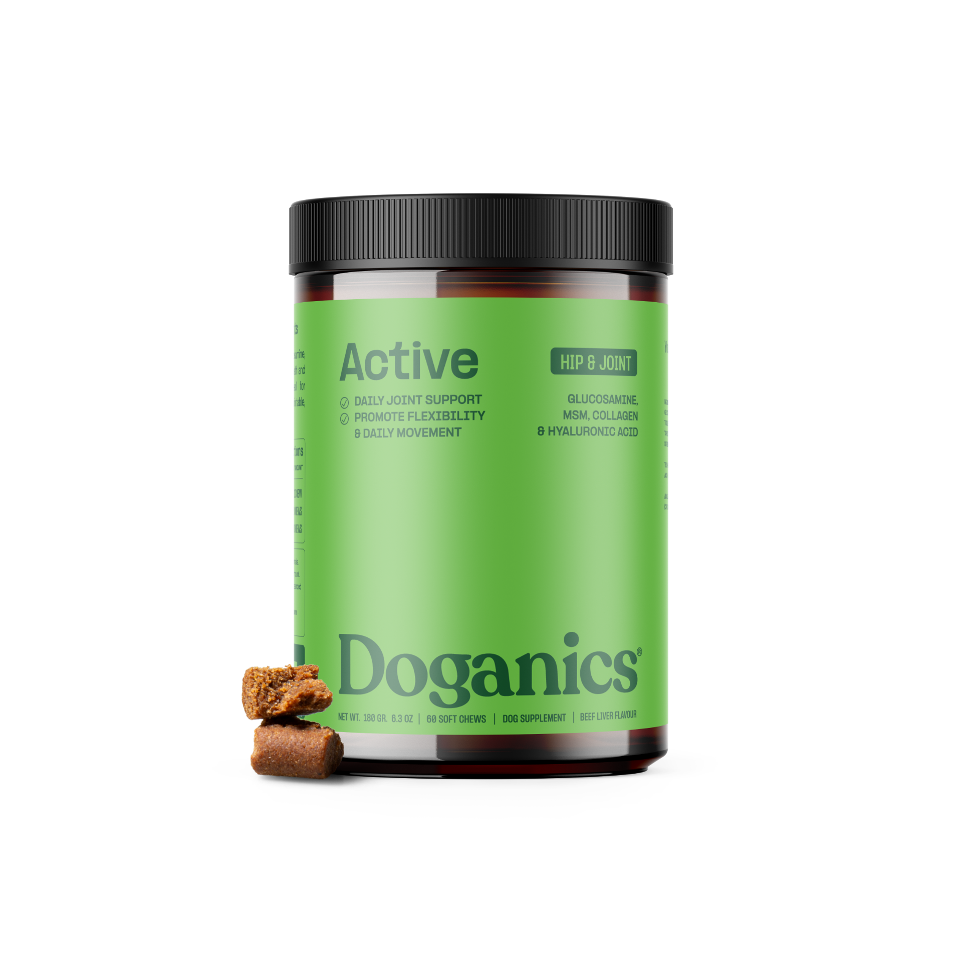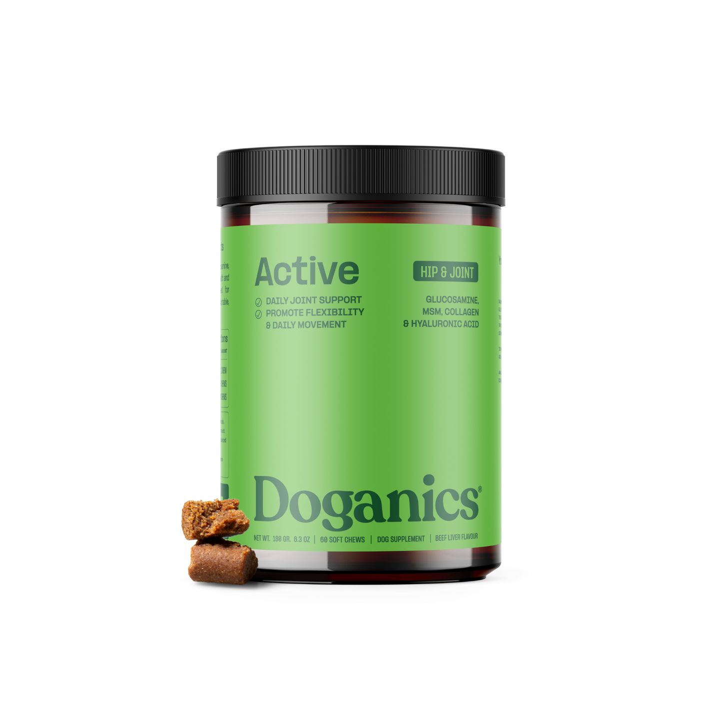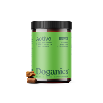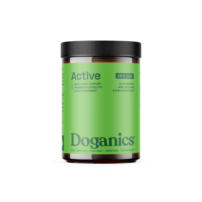 Doganics® Active est un complément alimentaire qui aide à la mobilité à base de glucosamine, de MSM, de collagène et d'acide hyaluronique pour soutenir la santé et la flexibilité des articulations. Enrichi d'huile de saumon et de graines de lin pour des bienfaits anti-inflammatoires, il aide les chiens à rester agiles en prenant soin de leurs articulations.