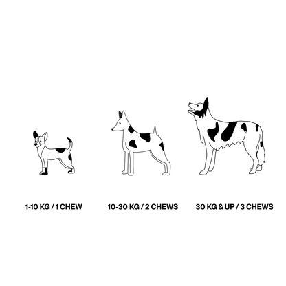 Pour les chiens entre 1-10 kg : 1 bouchée par jour