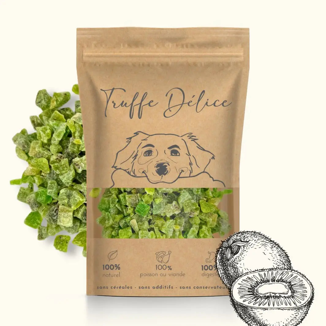 Les kiwis séchés pour chiens sont des friandises naturelles, savoureuses et nutritives, parfaite pour récompenser votre loulou ou compléter sa gamelle pour la rendre plus alléchante.