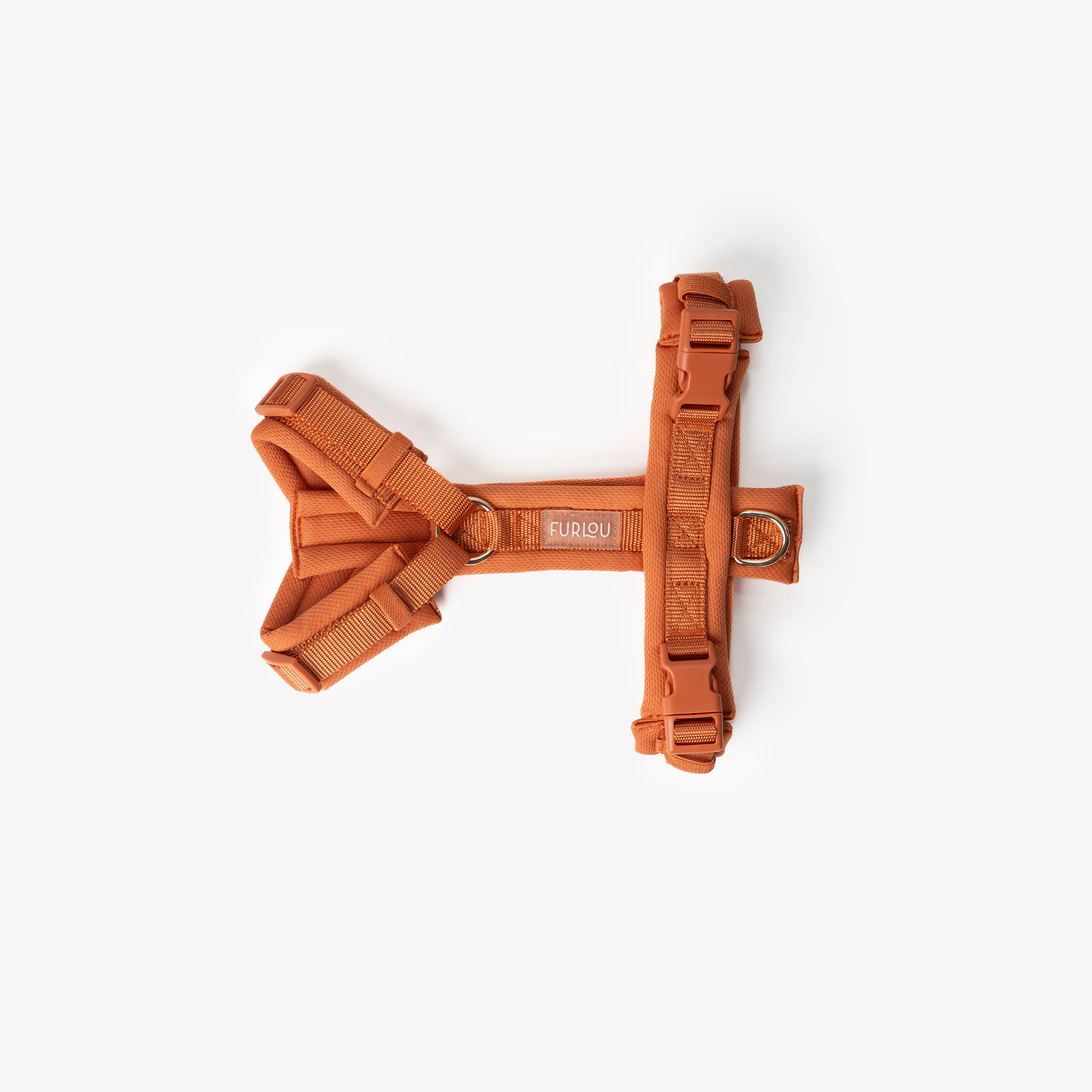 Le harnais comfort Terracotta est issu de la nouvelle collection Furlou 2025. Ce harnais est fabriqué avec des sangles de polyester ainsi qu'un tissu respirant qui vient rembourrer chaque sangle, afin d'assurer un confort optimal pour votre chien en balade. Disponible du XS au L, il convient à toutes les morphologies grâce à ses sangles réglables au cou et au ventre.