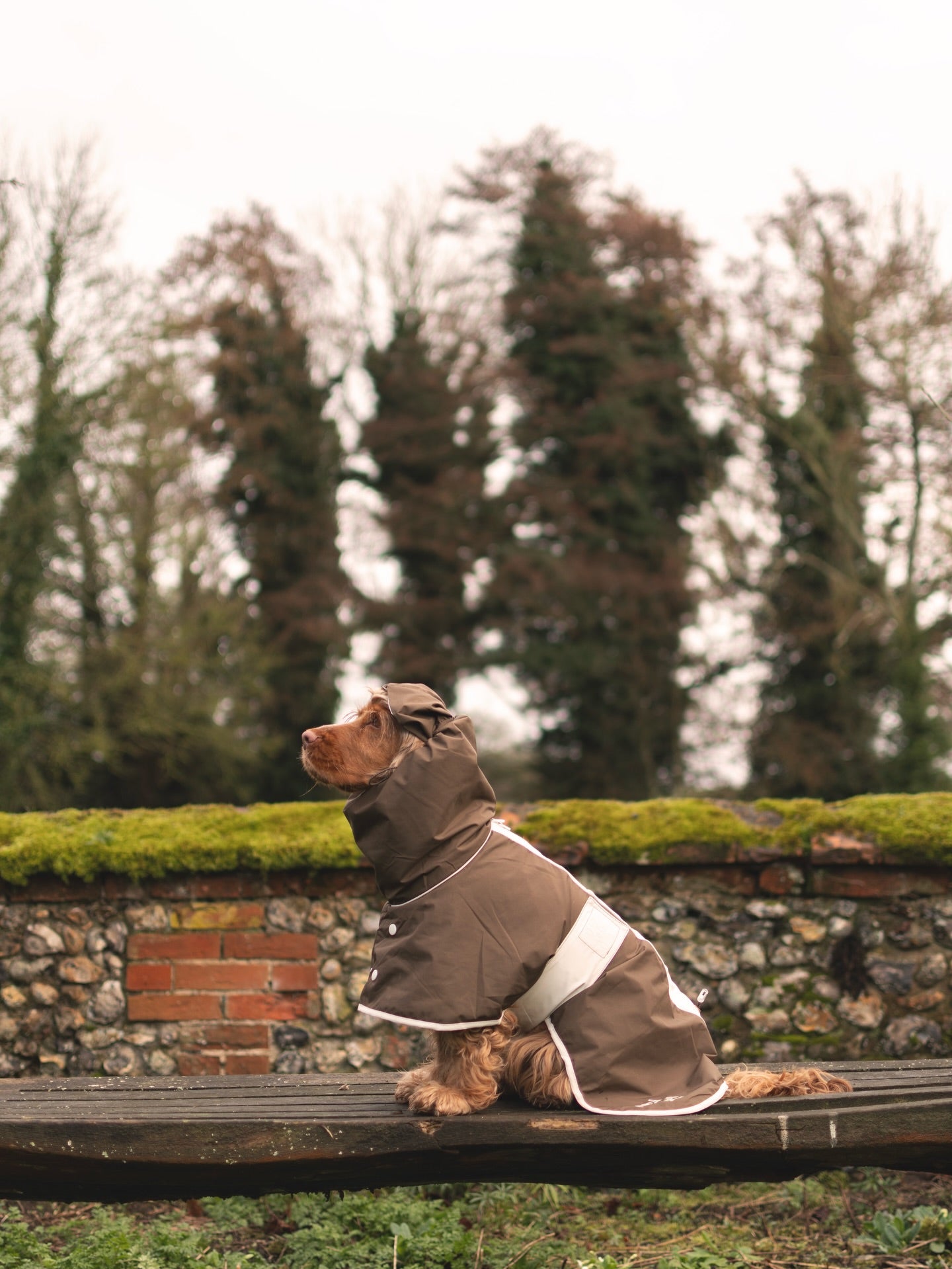 La veste est équipée d’un snood intégré, d’une ouverture zippée étanche pour la laisse, ainsi que de bandes réfléchissantes pour plus de visibilité lors des promenades du soir.