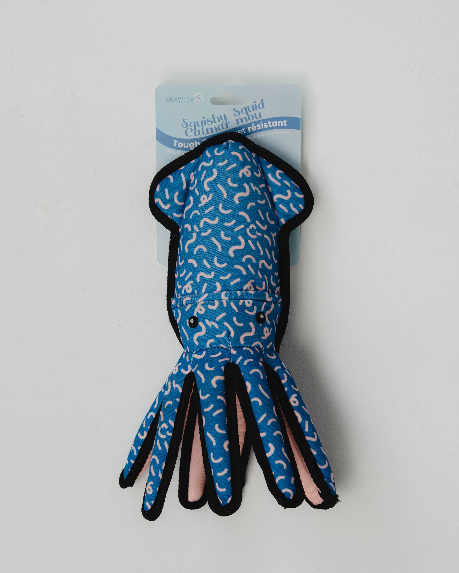 Jouet en peluche robuste en forme de calmar, conçu spécialement pour offrir des sessions de jeu longues et amusantes à ton chien. Il combine une texture peluche douce avec une construction renforcée pour un jeu interactif — tirage, secouage, câlins — tout en restant confortable à mâcher et résistant.
