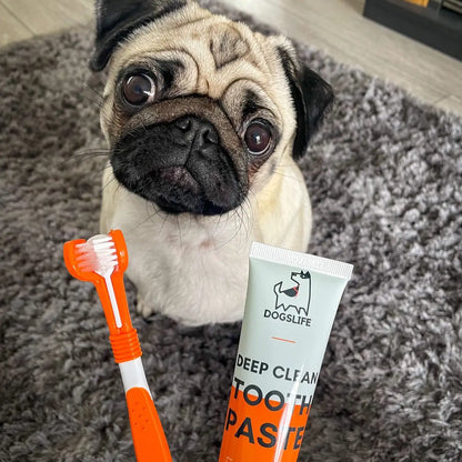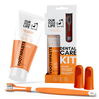 Ce kit contient une brosse à dent à triple-tête, deux brosses doigtier et deux dentifrices pour chien infusé de saveurs savoureuses qui rendra les soins dentaires plus simples pour vous et votre compagnon. Il permettra d'avoir une hygiène bucco-dentaire saine et sans tracas, en éliminant le tartre et en favorisant une meilleure haleine.