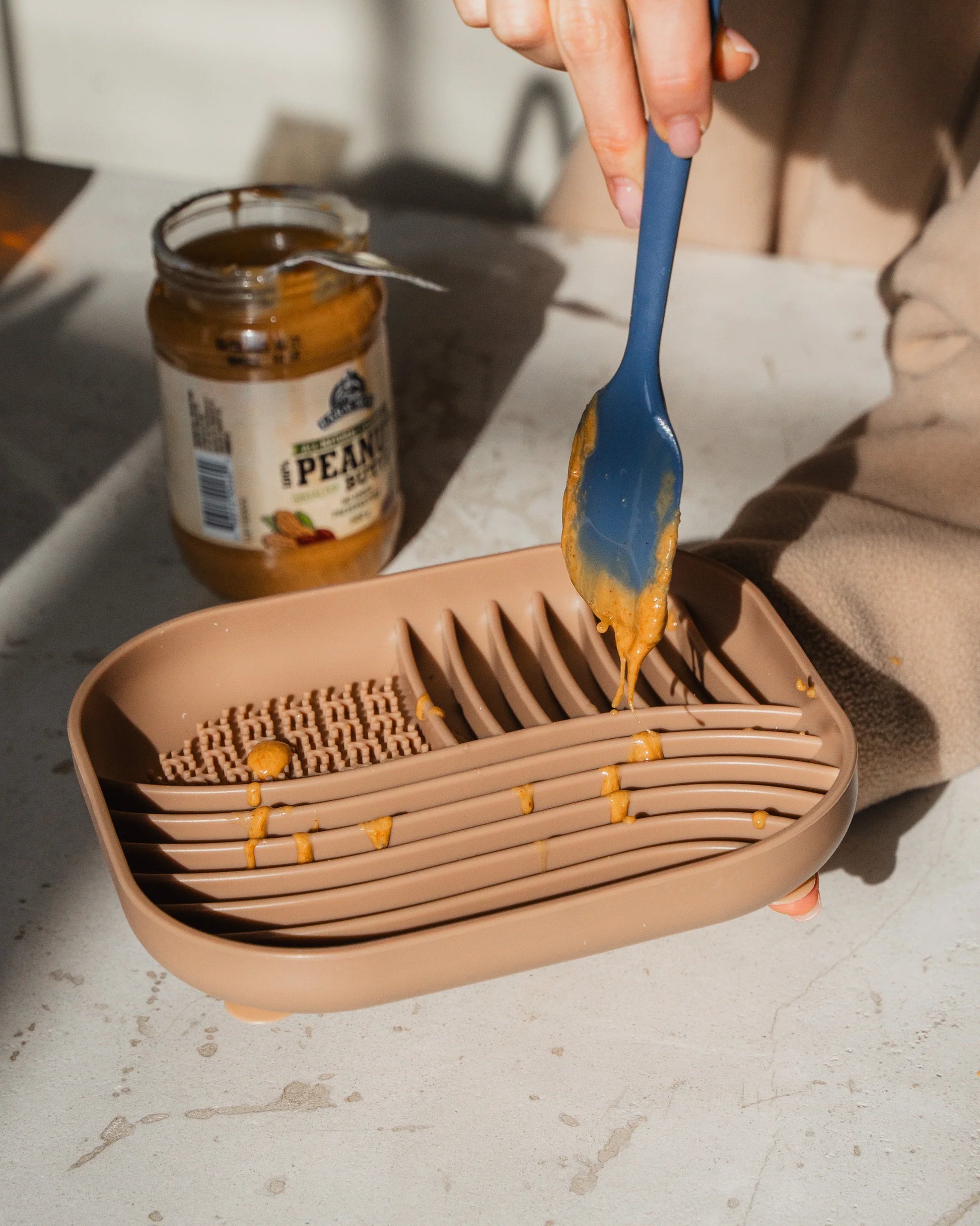 Tapis de léchage en silicone 100 % alimentaire, conçu pour transformer l’heure du repas en un moment ludique et bénéfique pour votre chien ou votre chat. Grâce à son design "anti-glouton", votre animal devra fouiller pour trouver sa nourriture (sèche ou humide), ce qui le pousse à manger plus lentement, favorisant une meilleure digestion et réduisant les risques de ballonnement.